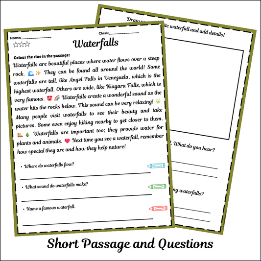 Waterfalls | Short Reading Comprehension Creative Worksheet
