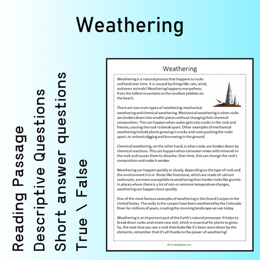 Weathering | Reading Comprehension Passage Printable Worksheet