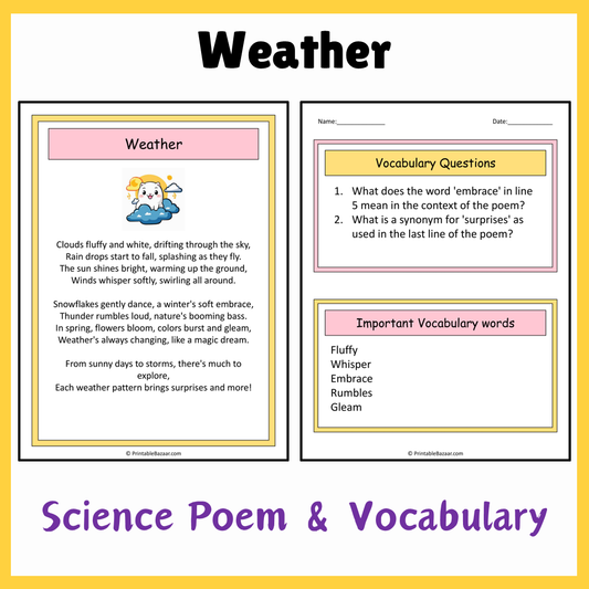 Weather | Science Poem Reading Comprehension Activity