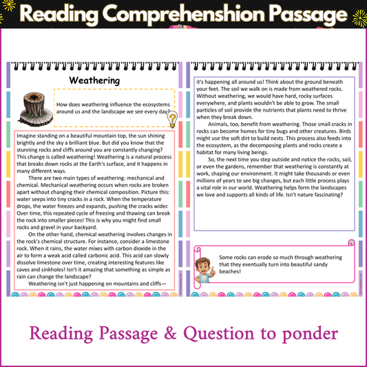 Weathering and Erosion | Reading Comprehension Passage Printable Worksheet