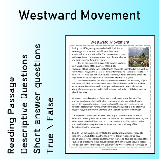 Westward Movement | Reading Comprehension Passage Printable Worksheet