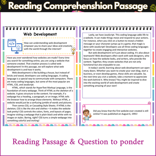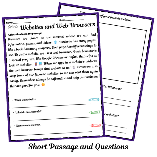 Websites and Web Browsers | Short Reading Comprehension Creative Worksheet