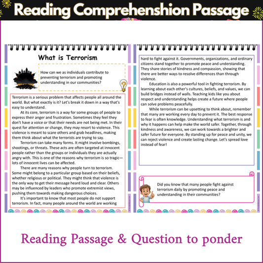 What is Terrorism | Reading Comprehension Passage Printable Worksheet