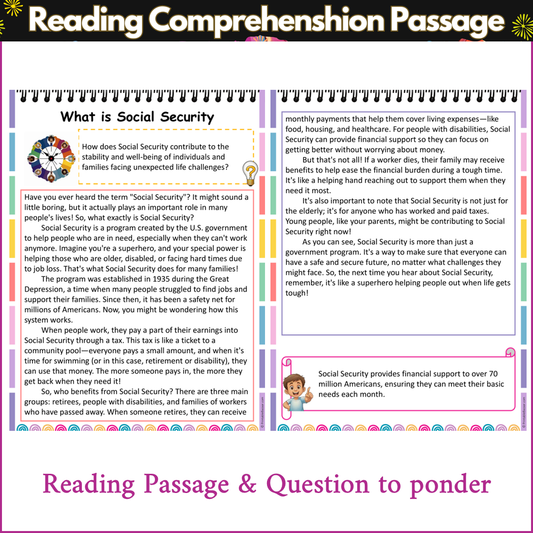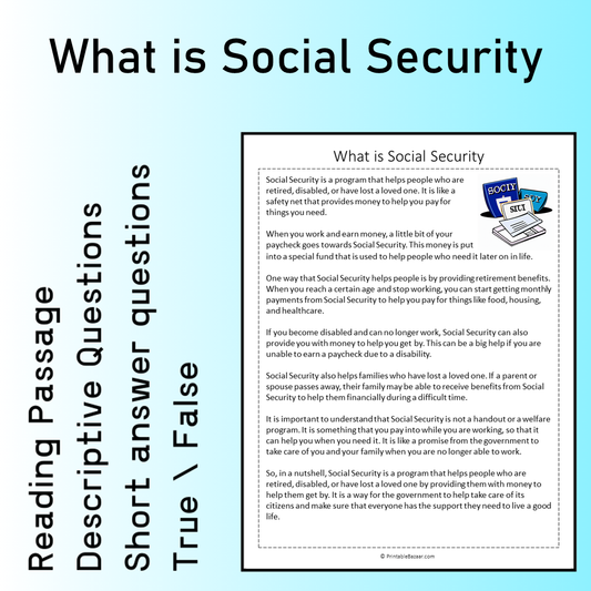 What is Social Security | Reading Comprehension Passage Printable Worksheet