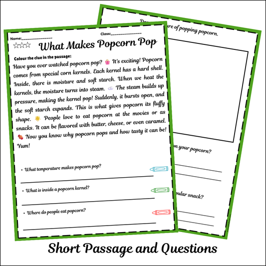 What Makes Popcorn Pop | Short Reading Comprehension Creative Worksheet