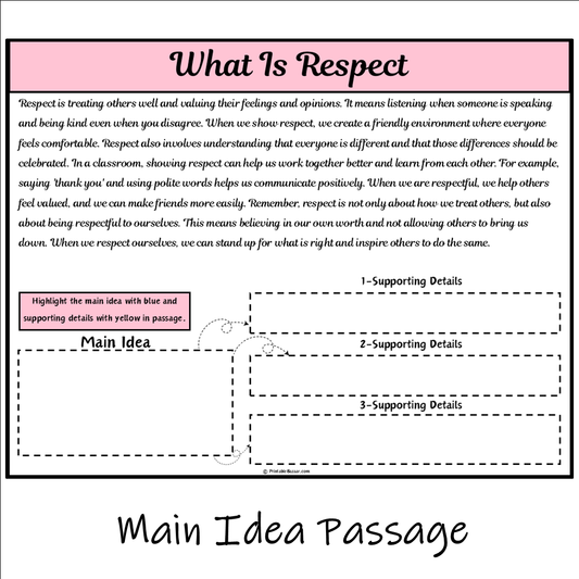 What Is Respect | Main Idea and Supporting Details Reading Passage and Questions