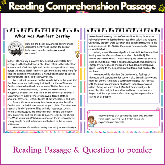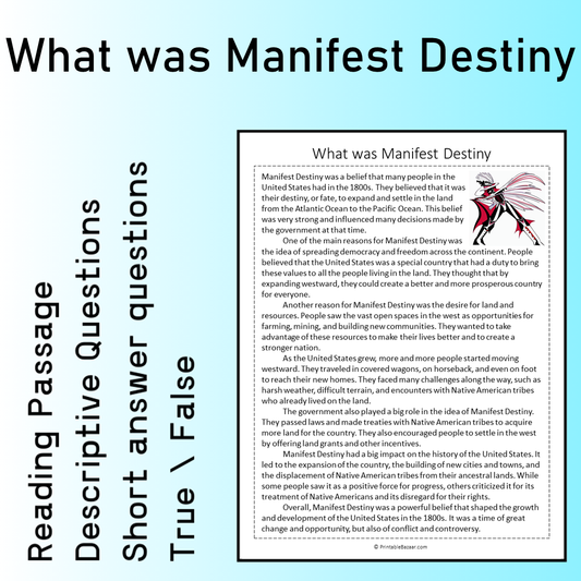 What was Manifest Destiny | Reading Comprehension Passage Printable Worksheet