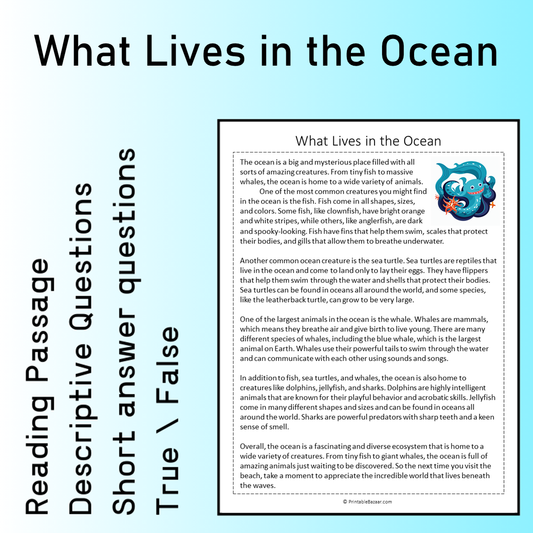 What Lives in the Ocean | Reading Comprehension Passage Printable Worksheet