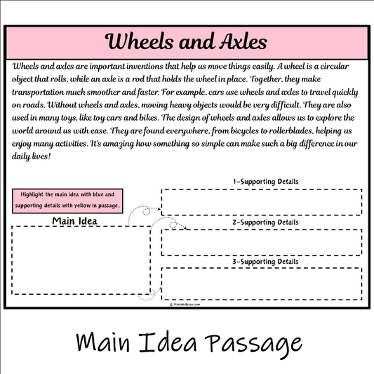 Wheels and Axles | Main Idea and Supporting Details Reading Passage and Questions