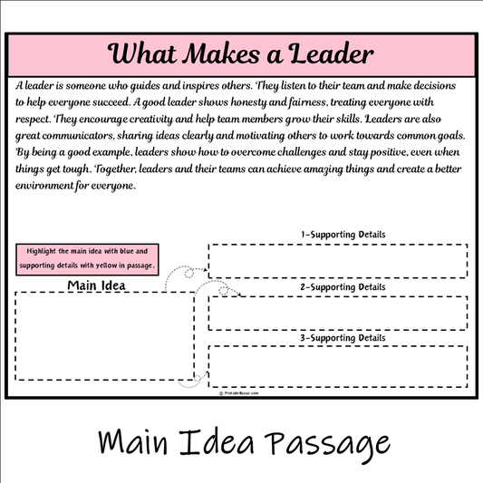What Makes a Leader | Main Idea and Supporting Details Reading Passage and Questions
