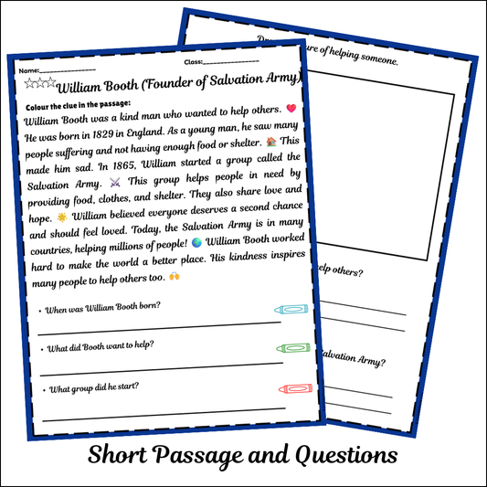 William Booth (Founder of Salvation Army) | Short Reading Comprehension Creative Worksheet