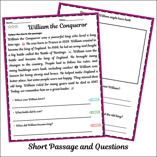William the Conqueror | Short Reading Comprehension Creative Worksheet