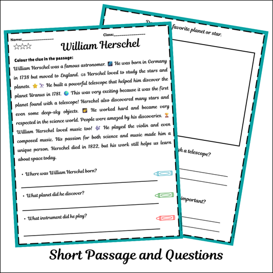 William Herschel | Short Reading Comprehension Creative Worksheet