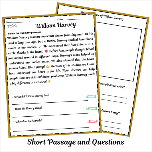 William Harvey | Short Reading Comprehension Creative Worksheet