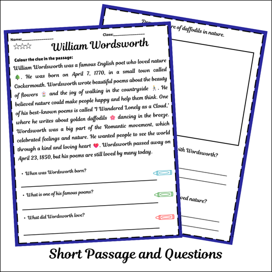 William Wordsworth | Short Reading Comprehension Creative Worksheet