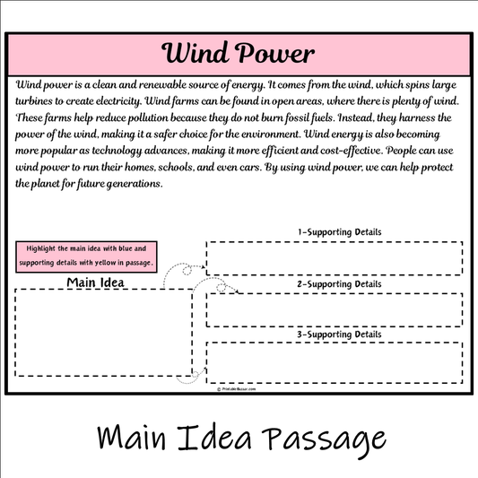 Wind Power | Main Idea and Supporting Details Reading Passage and Questions