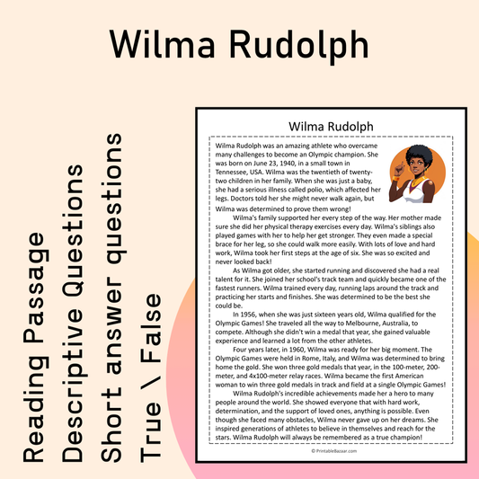 Wilma Rudolph | Reading Comprehension Passage Printable Activity