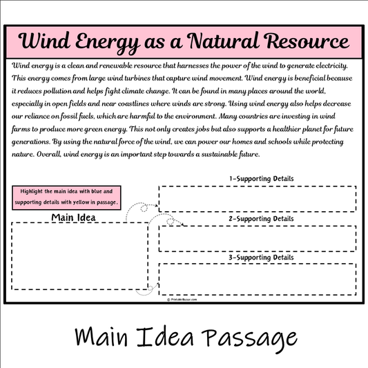 Wind Energy as a Natural Resource | Main Idea and Supporting Details Reading Passage and Questions