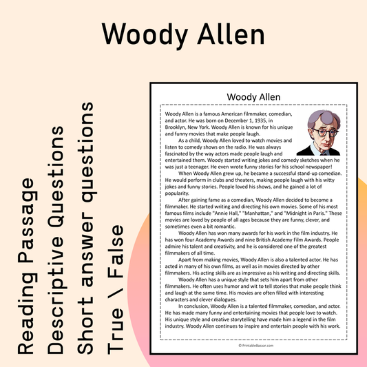 Woody Allen | Reading Comprehension Passage Printable Activity