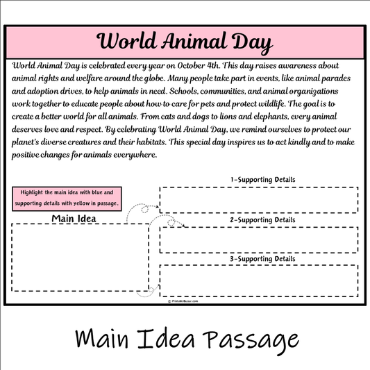 World Animal Day | Main Idea and Supporting Details Reading Passage and Questions