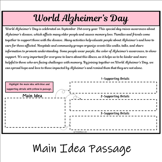 World Alzheimer’s Day | Main Idea and Supporting Details Reading Passage and Questions