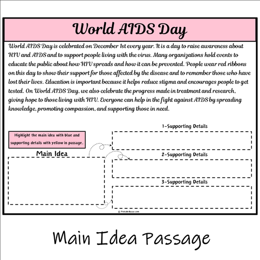 World AIDS Day | Main Idea and Supporting Details Reading Passage and Questions