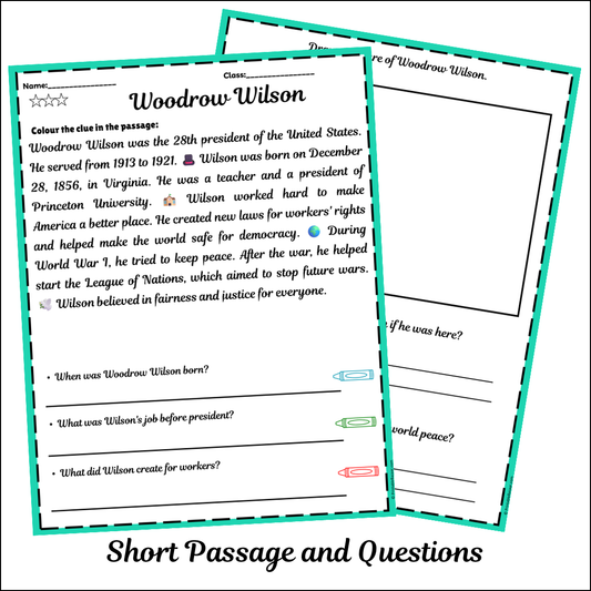 Woodrow Wilson | Short Reading Comprehension Creative Worksheet