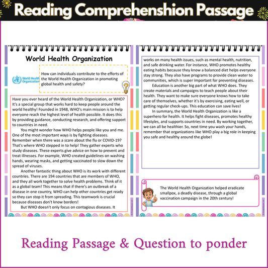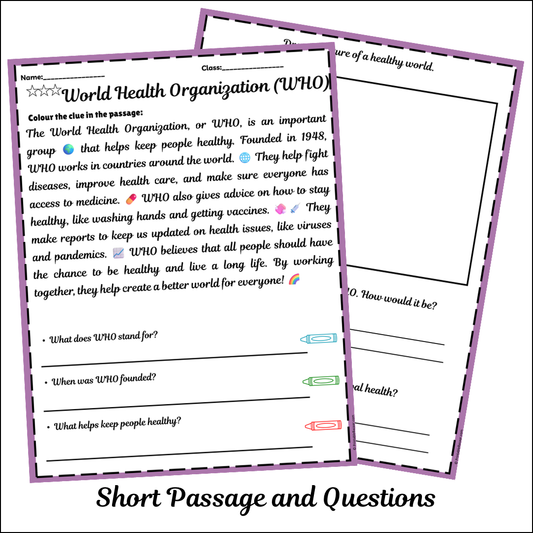 World Health Organization (WHO) | Short Reading Comprehension Creative Worksheet