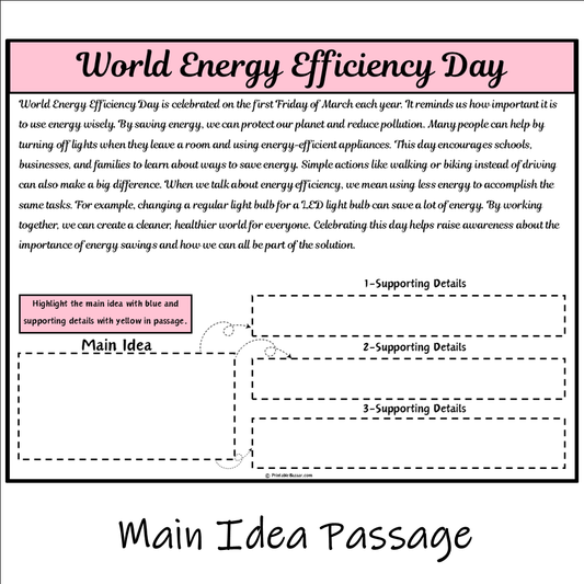 World Energy Efficiency Day | Main Idea and Supporting Details Reading Passage and Questions