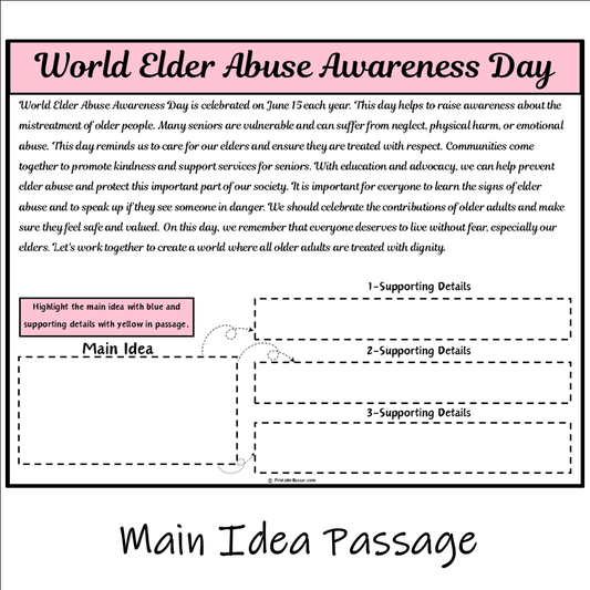 World Elder Abuse Awareness Day | Main Idea and Supporting Details Reading Passage and Questions