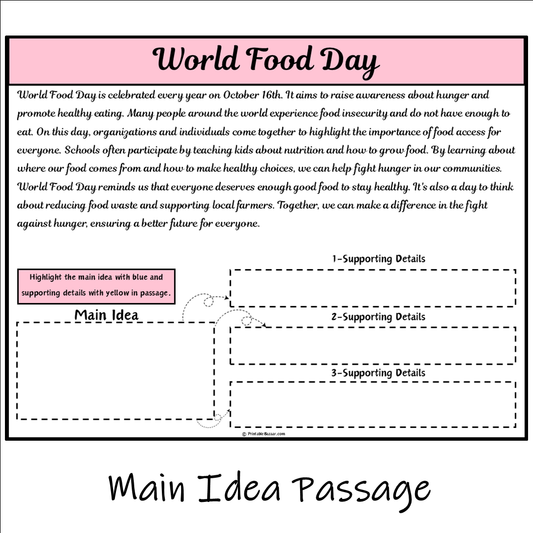 World Food Day | Main Idea and Supporting Details Reading Passage and Questions
