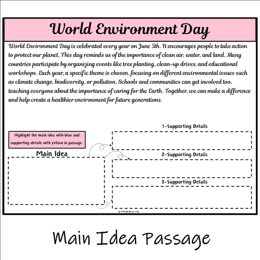 World Environment Day | Main Idea and Supporting Details Reading Passage and Questions