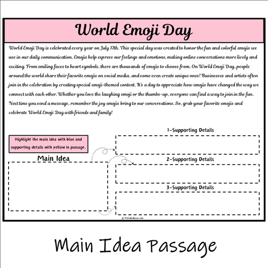 World Emoji Day | Main Idea and Supporting Details Reading Passage and Questions