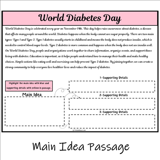 World Diabetes Day | Main Idea and Supporting Details Reading Passage and Questions