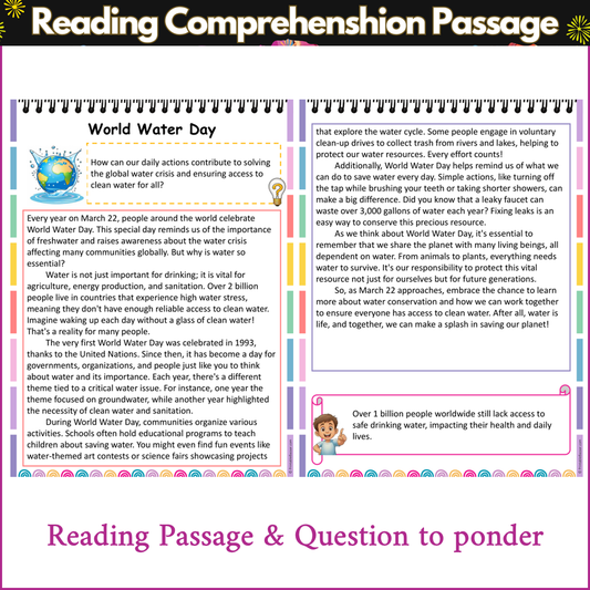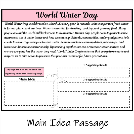 World Water Day | Main Idea and Supporting Details Reading Passage and Questions