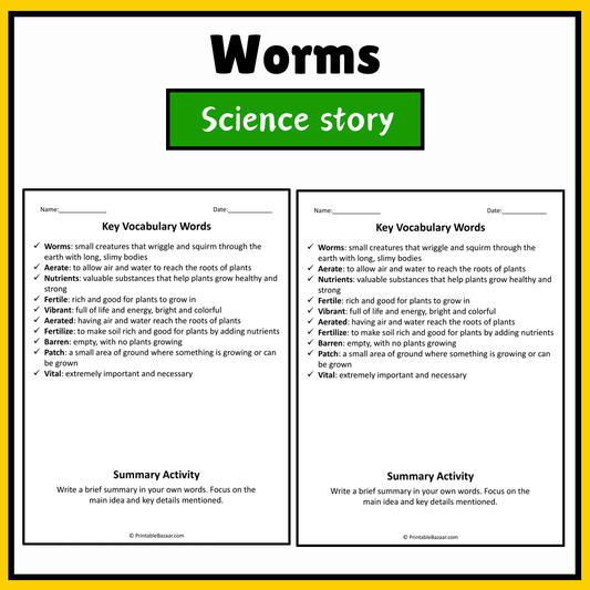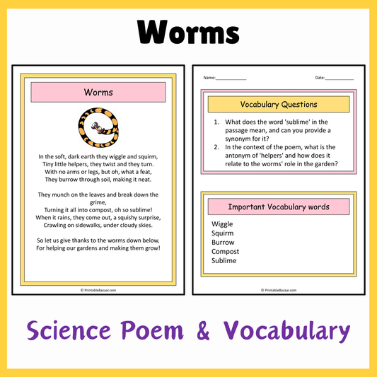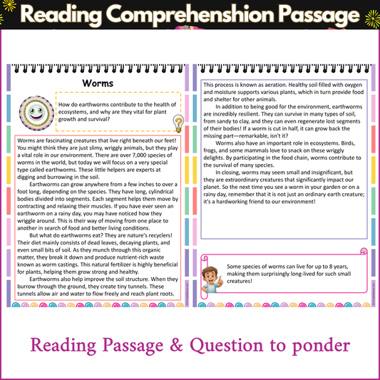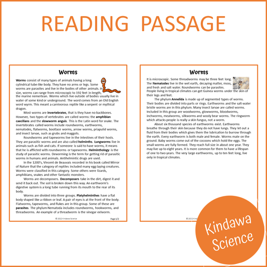 Worms Reading Comprehension Passage and Questions | Printable PDF