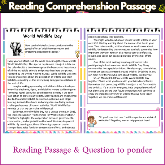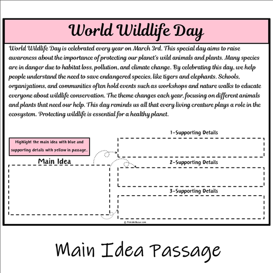 World Wildlife Day | Main Idea and Supporting Details Reading Passage and Questions