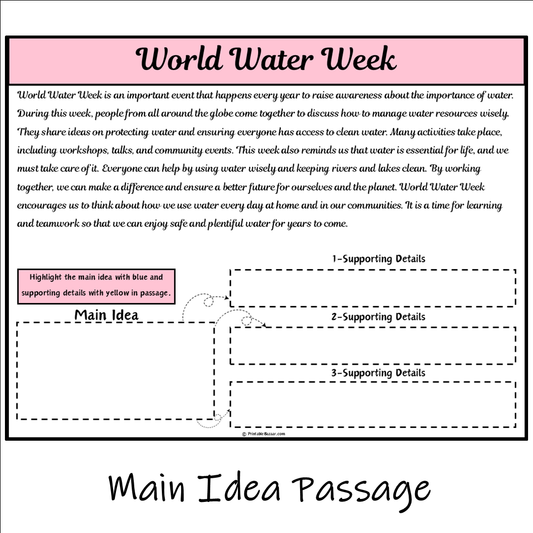 World Water Week | Main Idea and Supporting Details Reading Passage and Questions