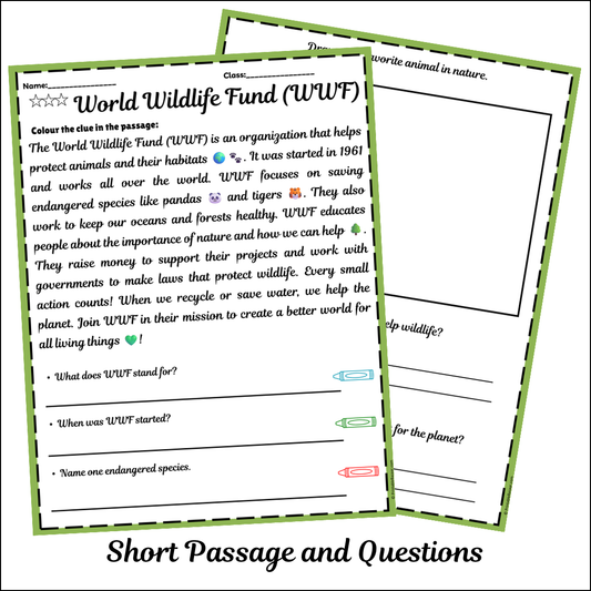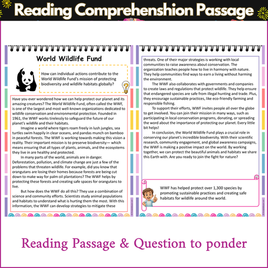 World Wildlife Fund (WWF) | Short Reading Comprehension Creative Worksheet