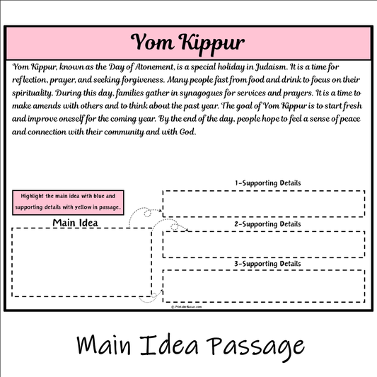 Yom Kippur | Main Idea and Supporting Details Reading Passage and Questions
