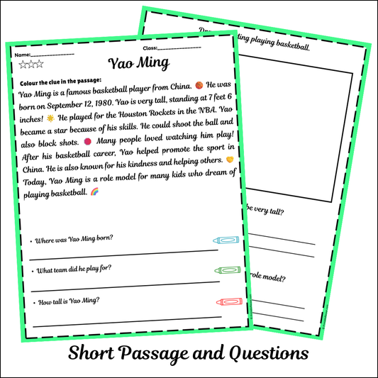 Yao Ming | Short Reading Comprehension Creative Worksheet