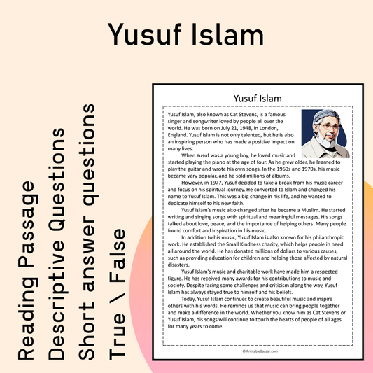 Yusuf Islam | Reading Comprehension Passage Printable Activity