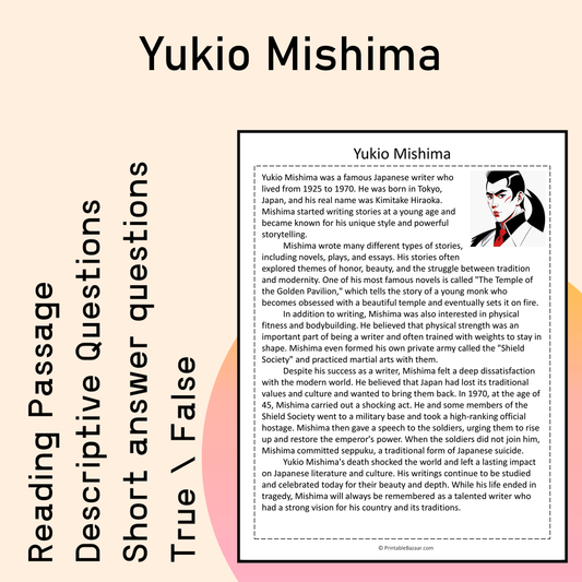 Yukio Mishima | Reading Comprehension Passage Printable Activity