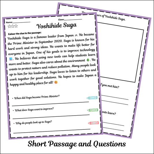 Yoshihide Suga | Short Reading Comprehension Creative Worksheet