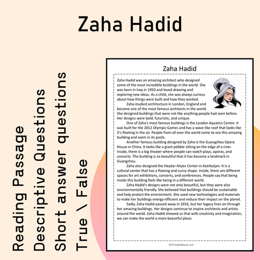 Zaha Hadid | Reading Comprehension Passage Printable Activity