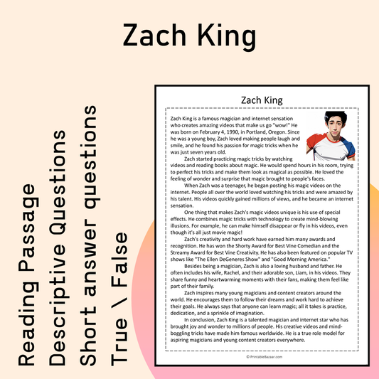 Zach King | Biography Reading Comprehension and Questions Worksheet