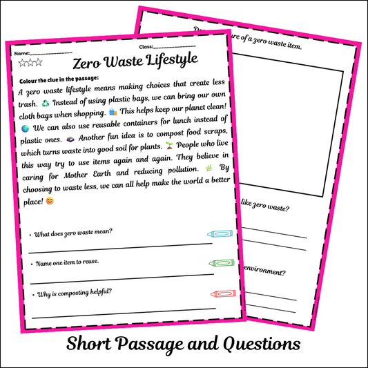 Zero Waste Lifestyle | Short Reading Comprehension Creative Worksheet