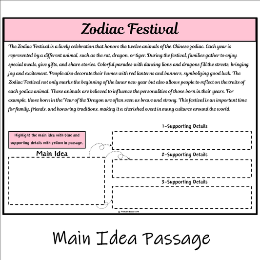 Zodiac Festival | Main Idea and Supporting Details Reading Passage and Questions