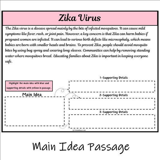 Zika Virus | Main Idea and Supporting Details Reading Passage and Questions