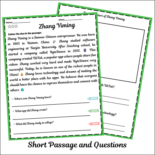 Zhang Yiming | Short Reading Comprehension Creative Worksheet